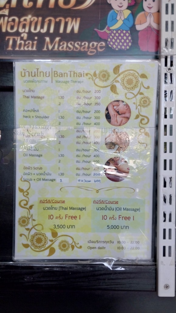 **1시간 타이마사지 = 200 바트**