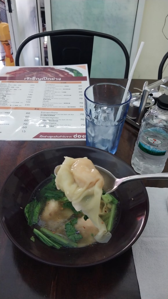편의점에서 **물 60리터 (10밧)** 하나 구입 후