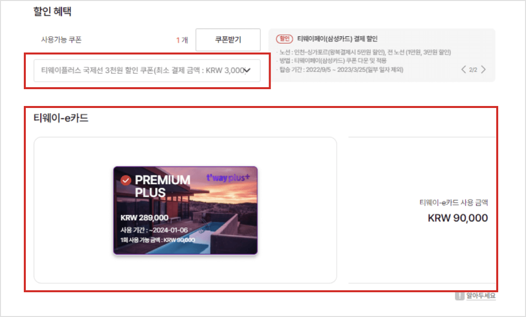 잔여 티웨이-e카드와 사용하지 않은 쿠폰은 모두 회수됩니다.