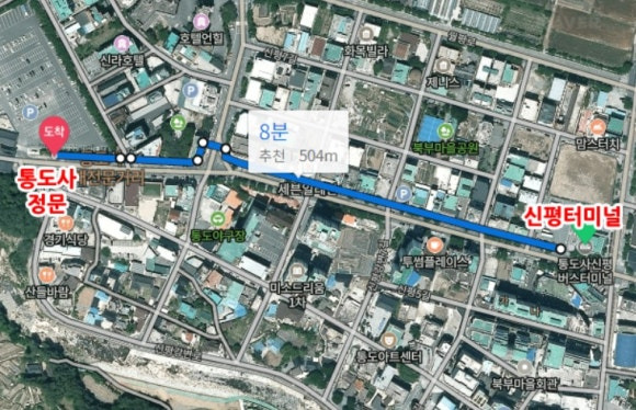 통도사 신평 터미널 정류장에서